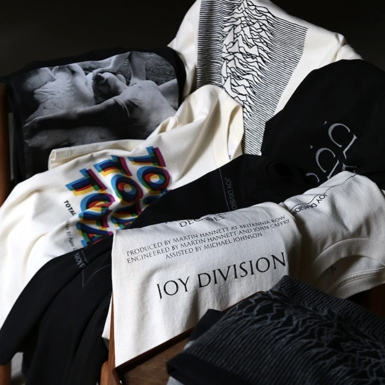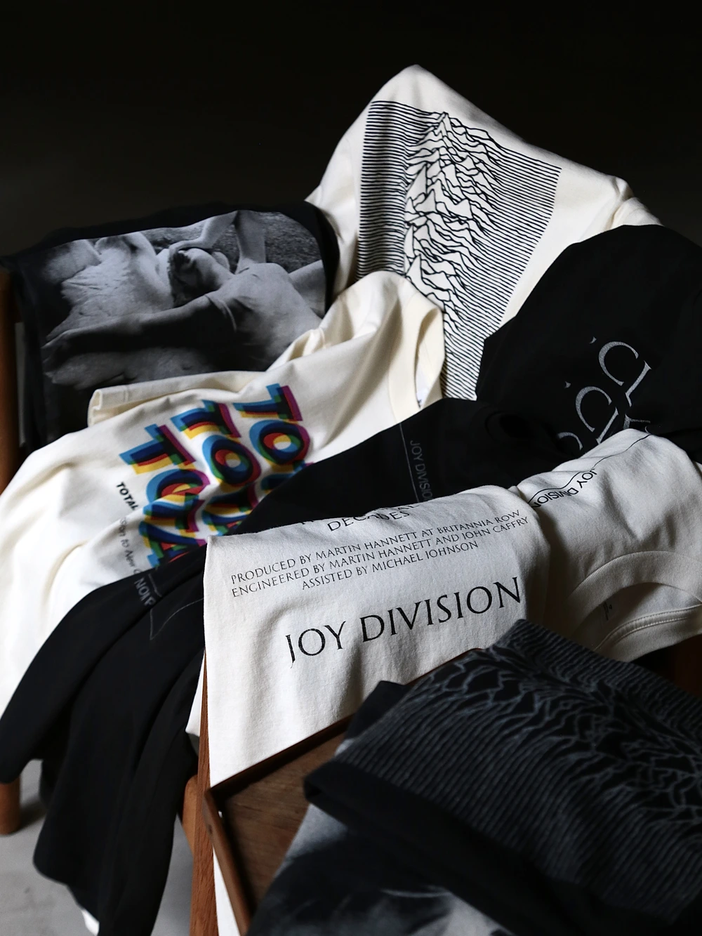 1970年代後半から80年代初頭にかけて活動したJoy Divisionは、静けさや余白を内包した独自の表現によって現在に至るまで強い影響を与え続けている。本ラインナップは、その空気感への共感を出発点に制作されたもので、単なるグラフィックの引用ではなく、抑制された表現の中にある緊張感や余白によって伝わる強さを、<blurhmsROOTSTOCK>の文脈で再構築している。