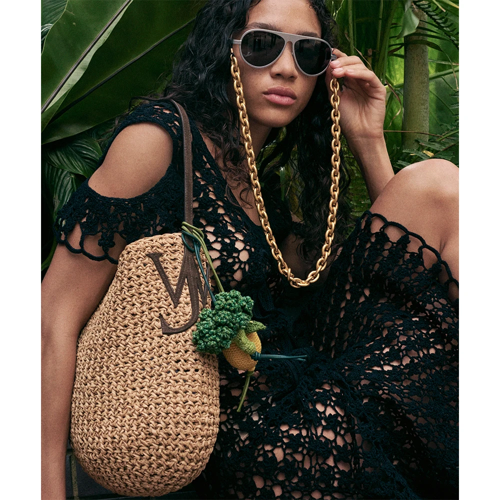 また、“Bulb Bag”が新たに登場。身体に沿う立体的なシルエットが特徴のニューモデルで、ビーズ装飾を施したスムースレザー仕様と、ナチュラルラフィアを用いたハンドクロシェ仕様の2種類で展開される。シグネチャーの“Loafer Bag”はカゴ編みから着想を得たウーブン仕様で登場し、すべて手作業で制作されている。