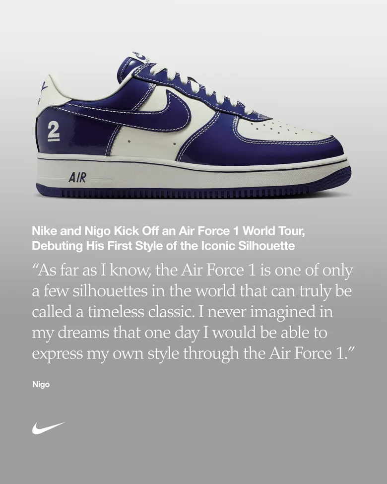 今後展開予定のエア フォース 1および新たなスタイルは、NIGOの友人やこれまでの歩みに着想を得たデザインとして、複数シーズンにわたり世界各地で展開される予定。