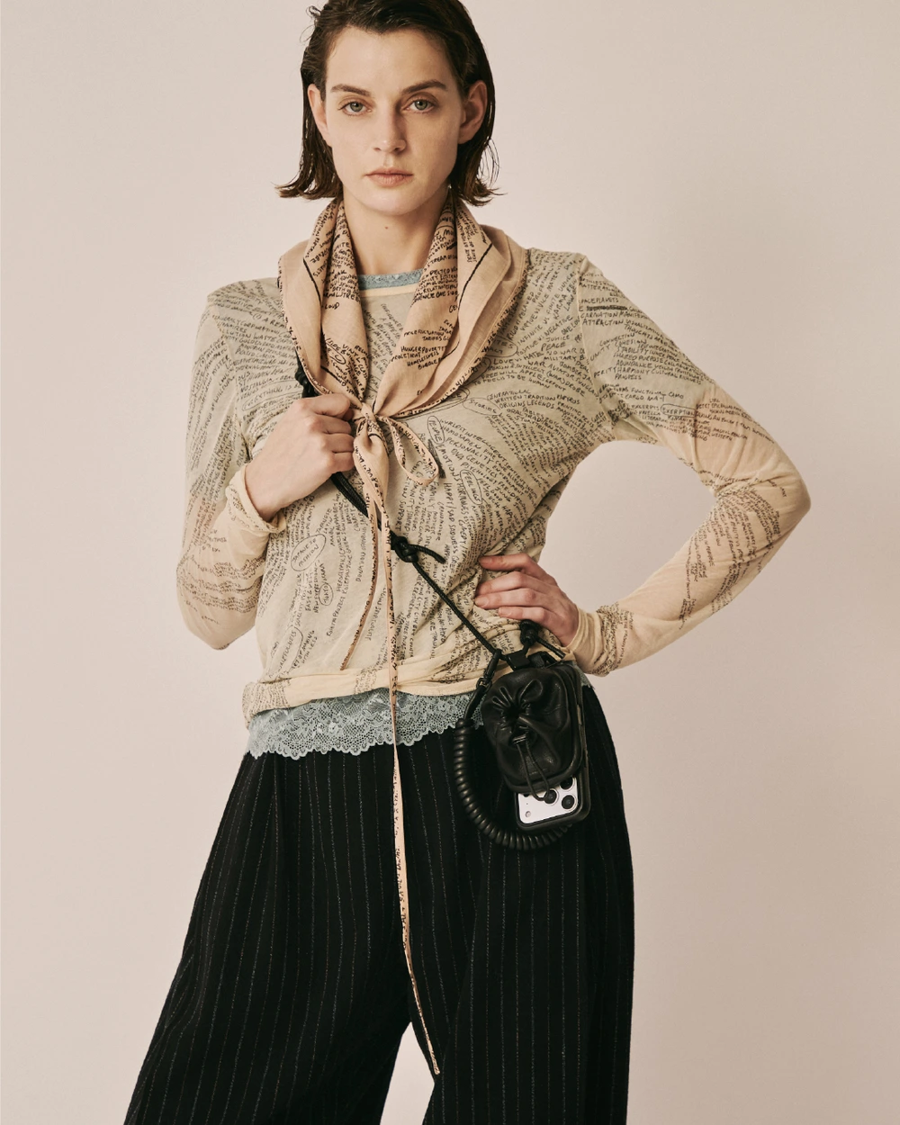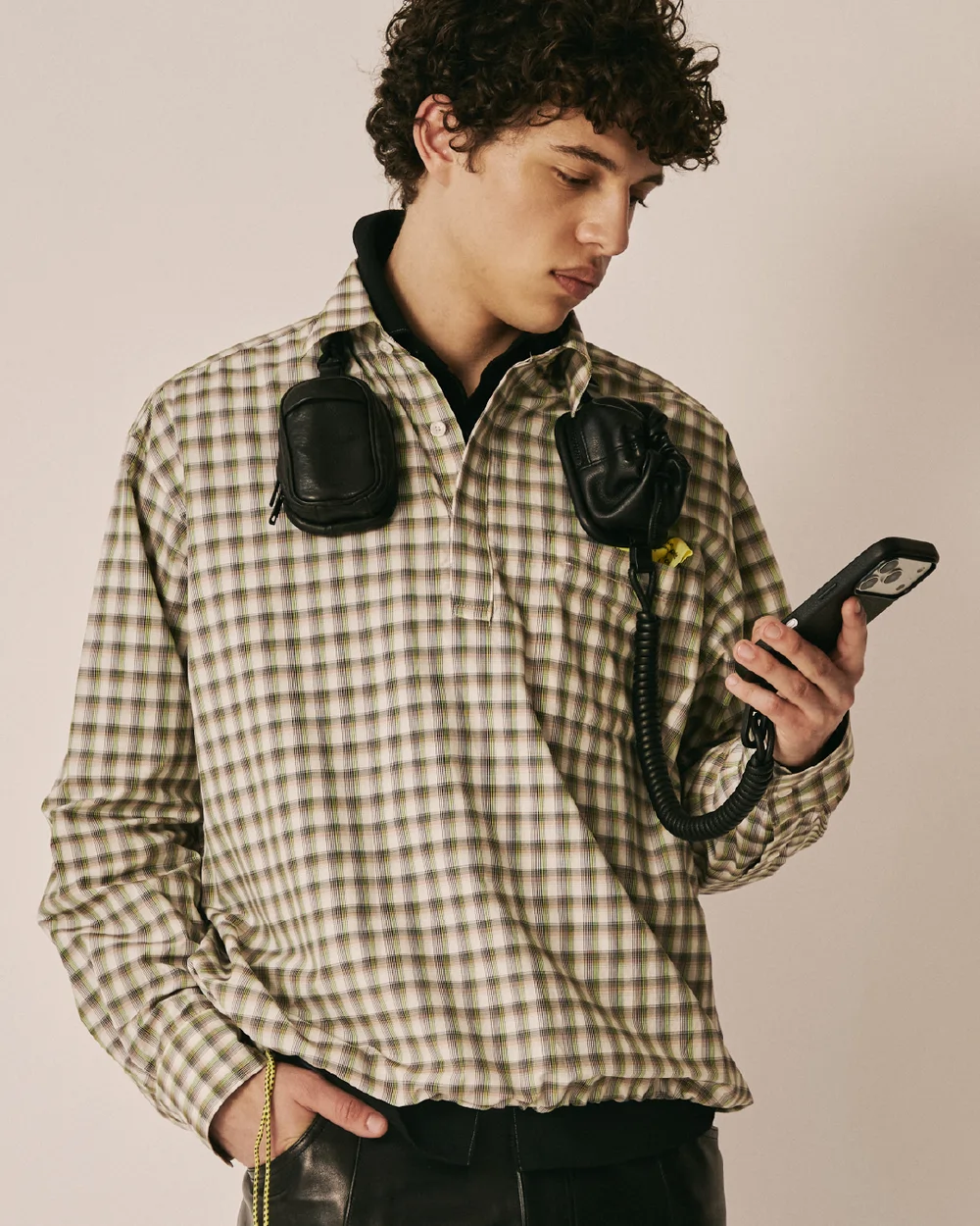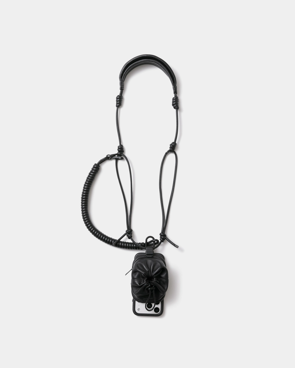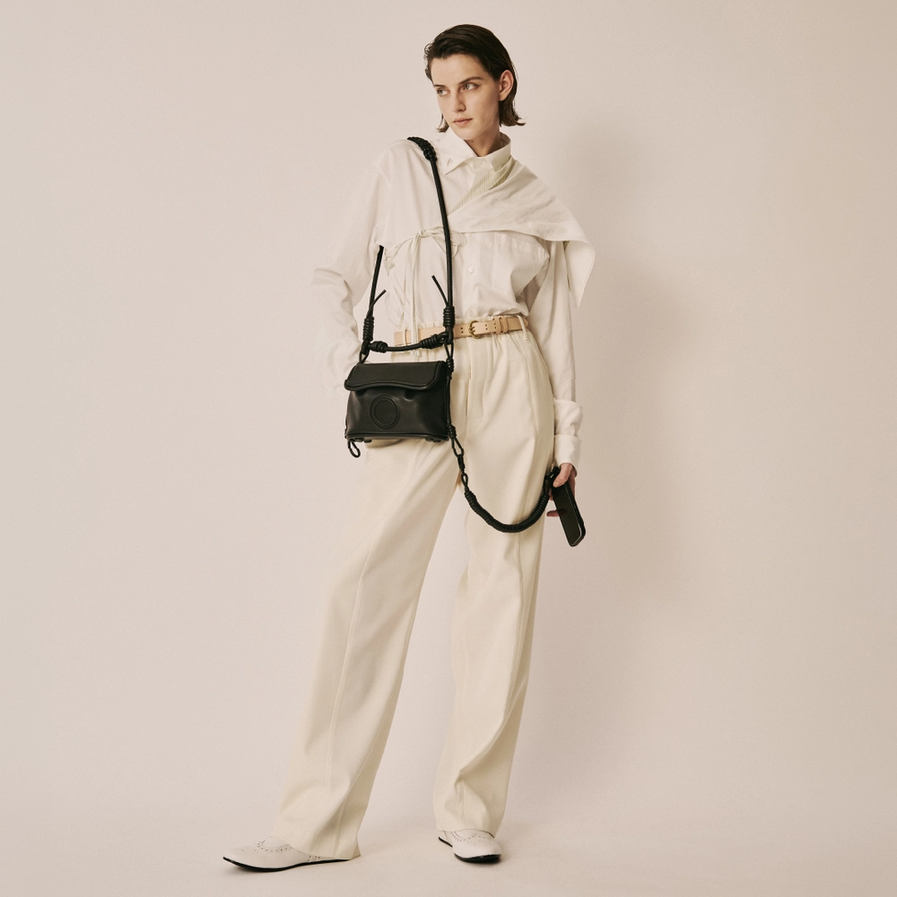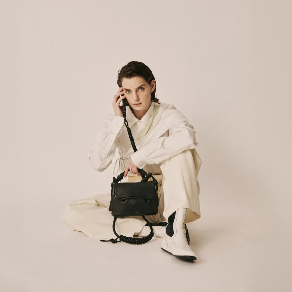 象徴的なアイテムとして、黒電話をモチーフにしたレザーバッグが展開される。黒電話の受話器のコードを想起させる螺旋状ストラップや立体的なフォルムを採用しつつ、MagSafeによる着脱機能を備え、現代の使用環境にも対応する設計となっており、過去の象徴的なプロダクトと現代のテクノロジーを掛け合わせた、相反する要素を内包したデザインに仕上がっている。