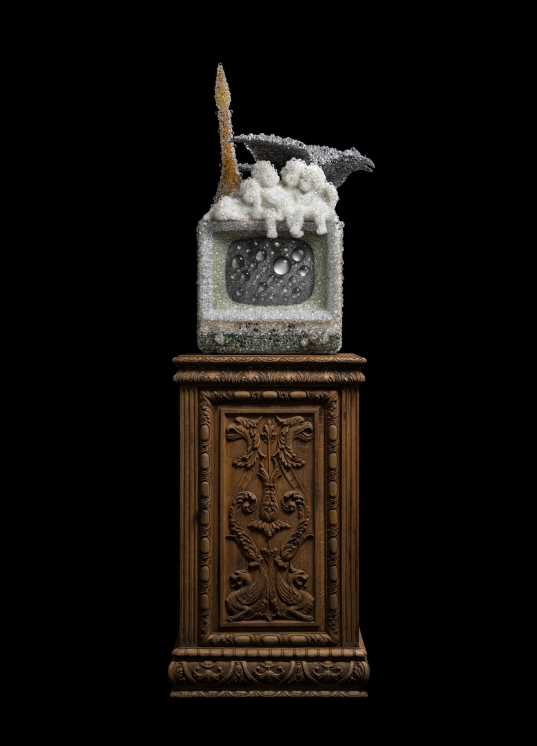 Kohei Nawa, PixCell-TV/Angels/Crow/Decanter (detail), 2026, Mixed Media © Kohei Nawa, courtesy Pace Gallery. Photo: Nobutada OMOTE.