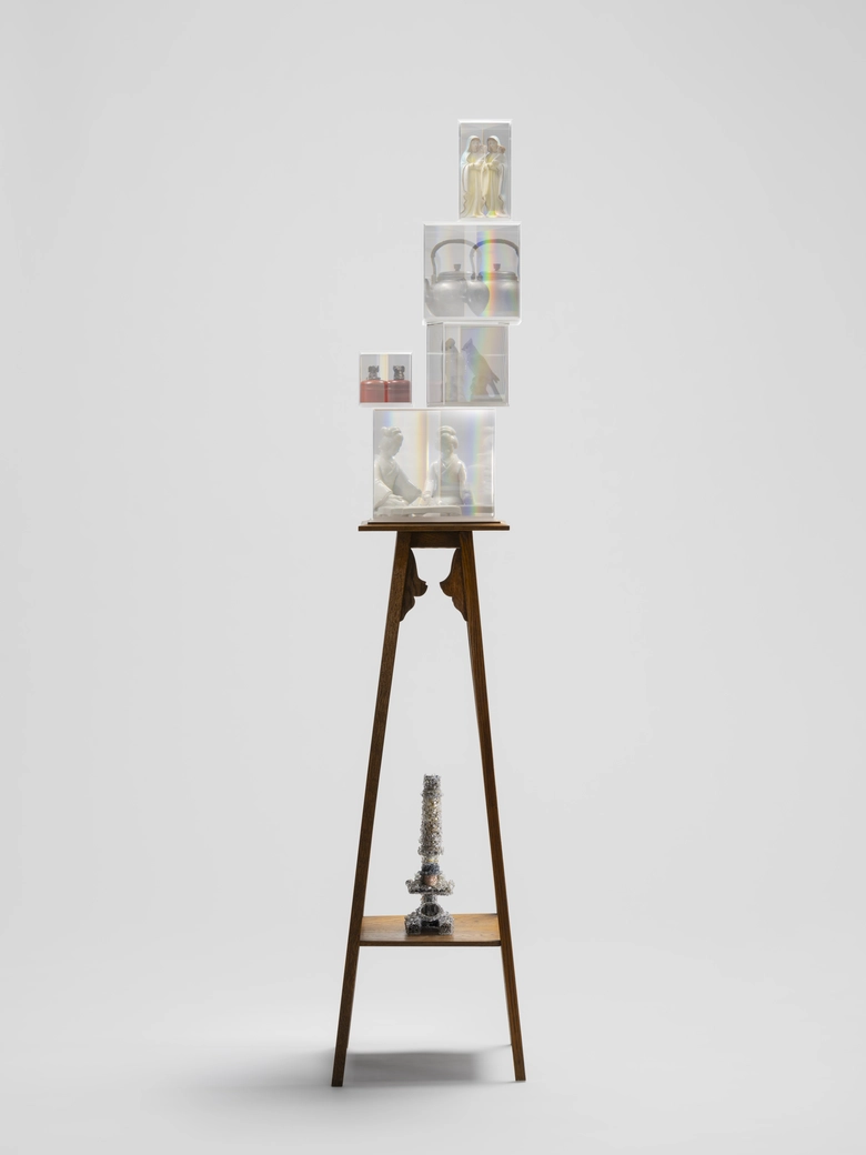 Kohei Nawa, Prism [Maria]/Prism [Kettle]/Prism [Toy-Bird]/Prism [Toy-Elephant]/Prism [Woman&Koto]/PixCell-Microscope/Alex (detail), 2026, Mixed Media © Kohei Nawa, courtesy Pace Gallery. Photo: Nobutada OMOTE.