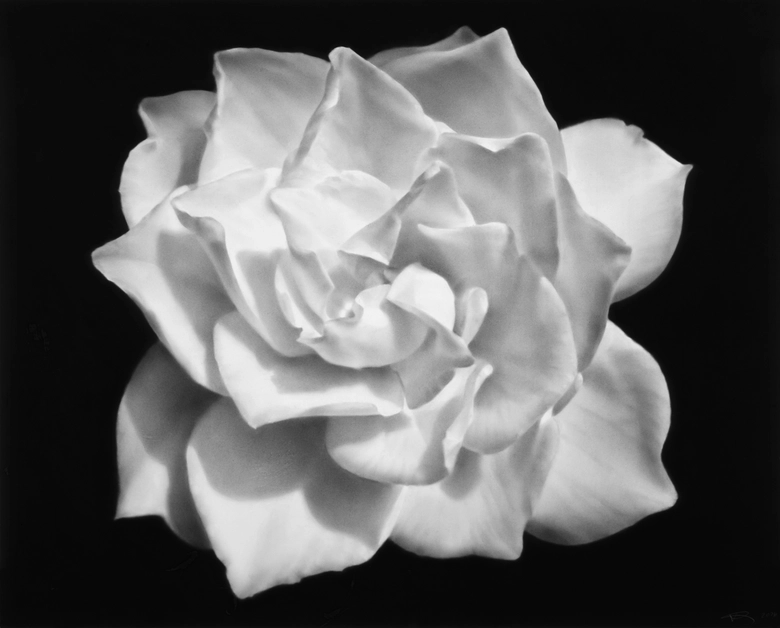 Robert Longo Untitled (Gardenia for Mary), 2026 WORK ON PAPER charcoal on mounted paper 40" × 50" (101.6 cm × 127 cm), image 45" × 55" × 3-9/16" (114.3 cm × 139.7 cm × 9 cm), frame © 2026 Robert Longo/Artists Rights Society (ARS), New York.