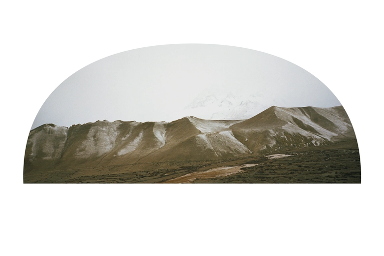 これまでも津田直は、ブータン王国や北極圏、リトアニアなど世界各地を訪れ、土地の中に潜む人の行いや、人と自然との交感、その関係性をとらえた作品を発表してきた。本シリーズは、仏教の原点を辿るべく、チベット仏教の文化や伝統が色濃く残るネパール北部のムスタン地方を旅して撮影されたものだ。約1か月にわたる旅路では、標高2,500〜4,000mほどの場所を日々移動していたといい、空気が澄み渡れば8,000m峰のヒマラヤの山々を目の前に望むことができる。その広大な景色には、積層した時間と自然の威容が感じられる。