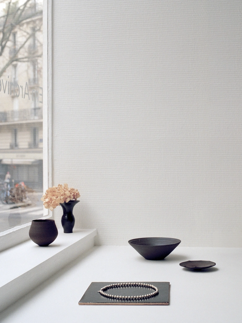 空間には、ウェアとともに世界観をなすように、Sisi Joiaのガラスジュエリーや、アーティスト・Sharlen Nozawaによるセラミック作品を常設展示。ファッションとアートが自然に交差する、静かな発見の場となっています。