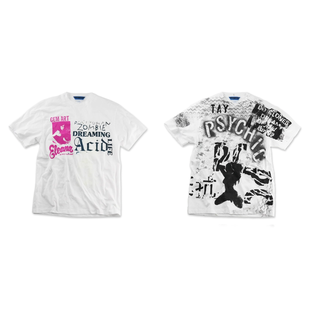 作家本人がシルクスクリーンで1点ずつプリントしたユニークピースで、各4点ずつ計8点の限定販売。プリントの位置やバランスはすべて異なり、それぞれが一点物として仕上げられている。また、同アーティストによって制作されたZINE「THANX GOD MUSIC IS MY OASIS」がノベルティとして付属する。