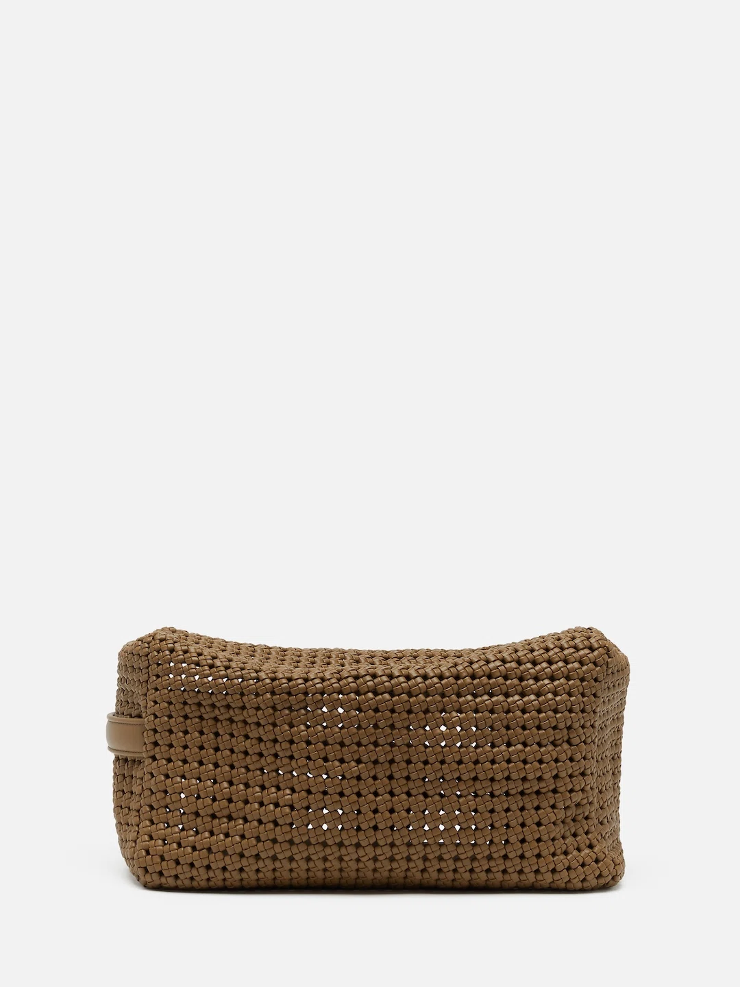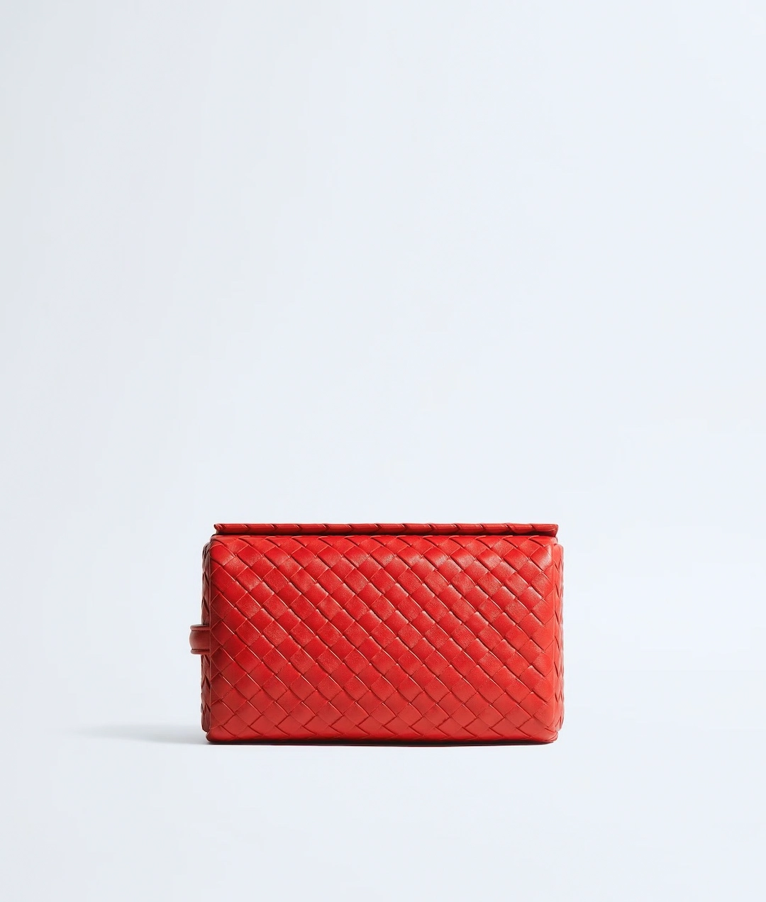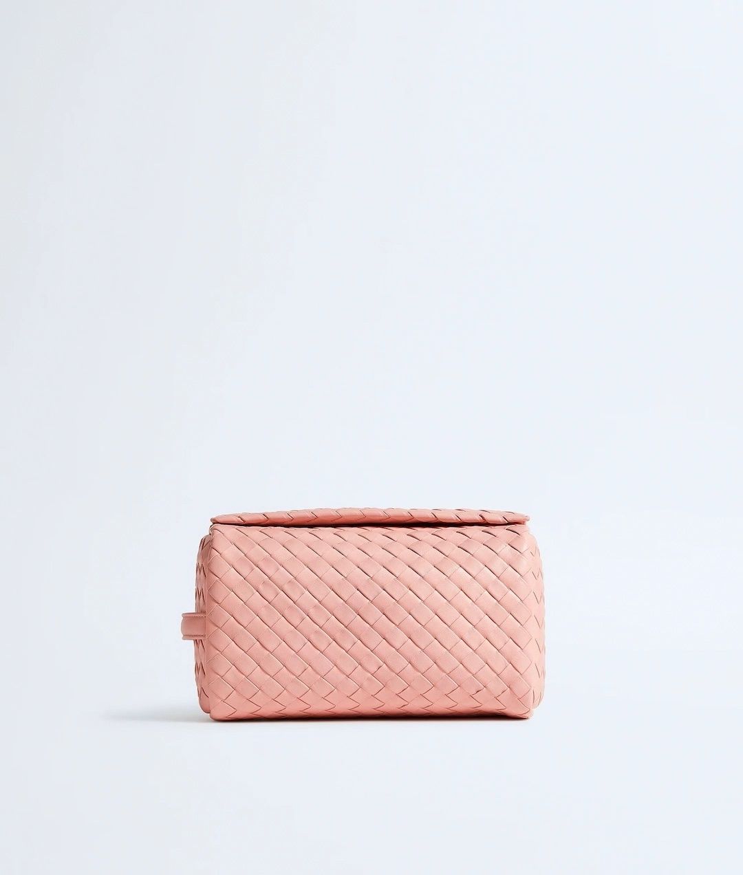 イントレチャート15で仕立てられており、ミニョンフェットゥーチェを用いることで、ソフトで立体感がある。前面から底面、背面、上部へとシームレスに続くメインパネルは、ファスナーを覆うフラップになっている。サイドパネルでポーチの構造を仕上げることで、ポーチ特有の長方形シルエットが際立つ。バッグ内側には、スエードのライニングが施されている。さらにファスナーポケットを付けることで、縦に持った時も小物が移動しないよう配慮されている。フラップでファスナーを隠し、2つの隠しマグネットでフラップを平らに保ったまましっかり閉じることができる。
