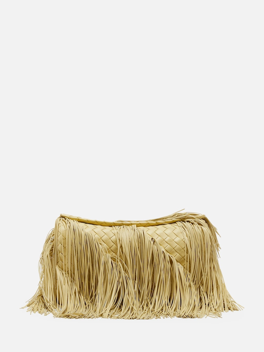 ロングフリンジをあしらったこのデザインでは、柔らかくふっくらとした手触りに仕上げたパデッド イントレチャート15をベースにしている。しなやかなナッパサプルレザーを使用したフリンジは、一本ずつ丁寧にカット・貼り合わせたうえで、次の工程で編み目に正確に差し込んでいく。斜めに美しく配されたフリンジは、動きに呼応して優雅に揺れ、調和とシンメトリー、そして躍動感あふれるテクスチャーをもたらす。一つのアイテムを完成させるために、丸一日以上かけて緻密な作業を丁寧に施している。