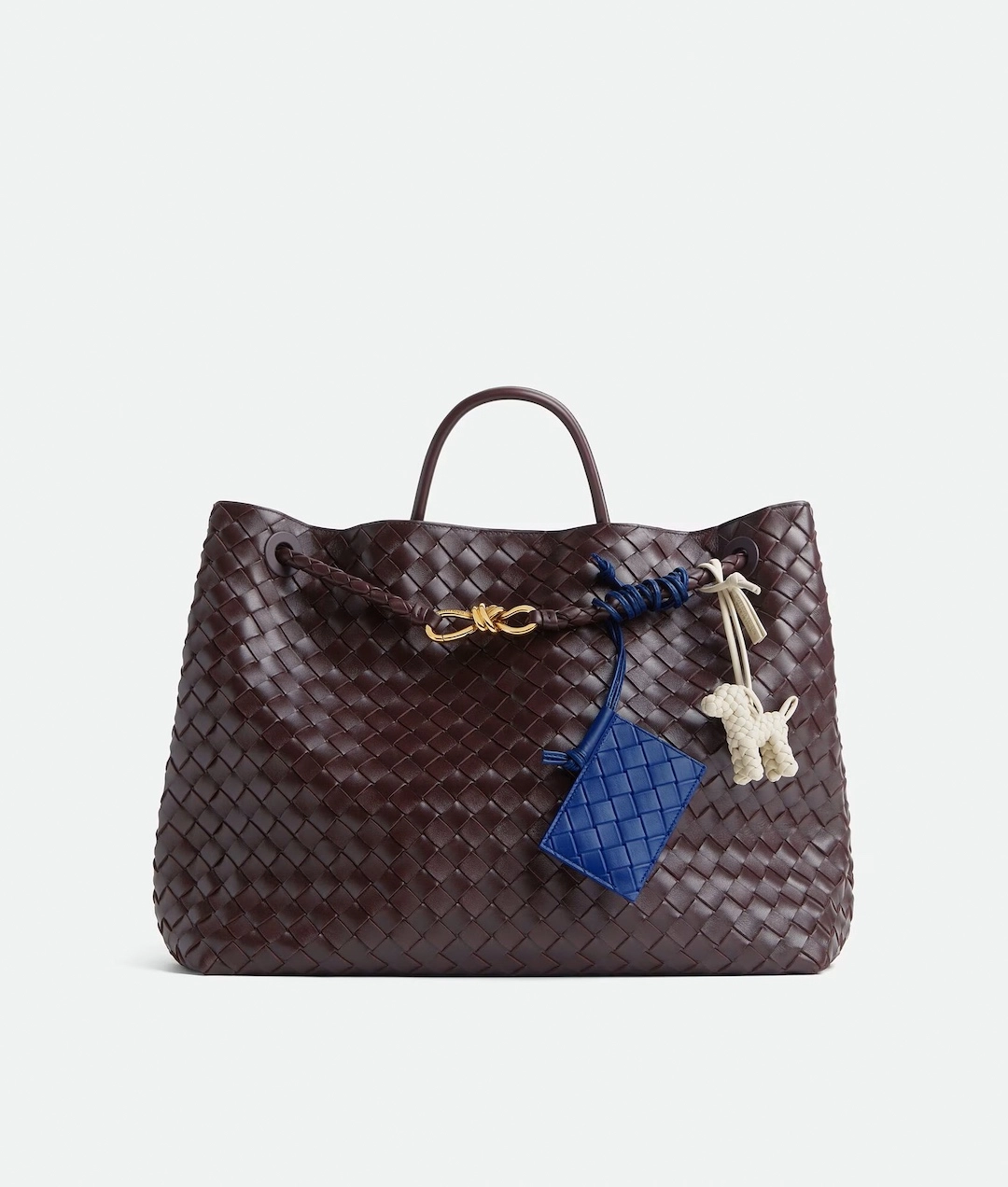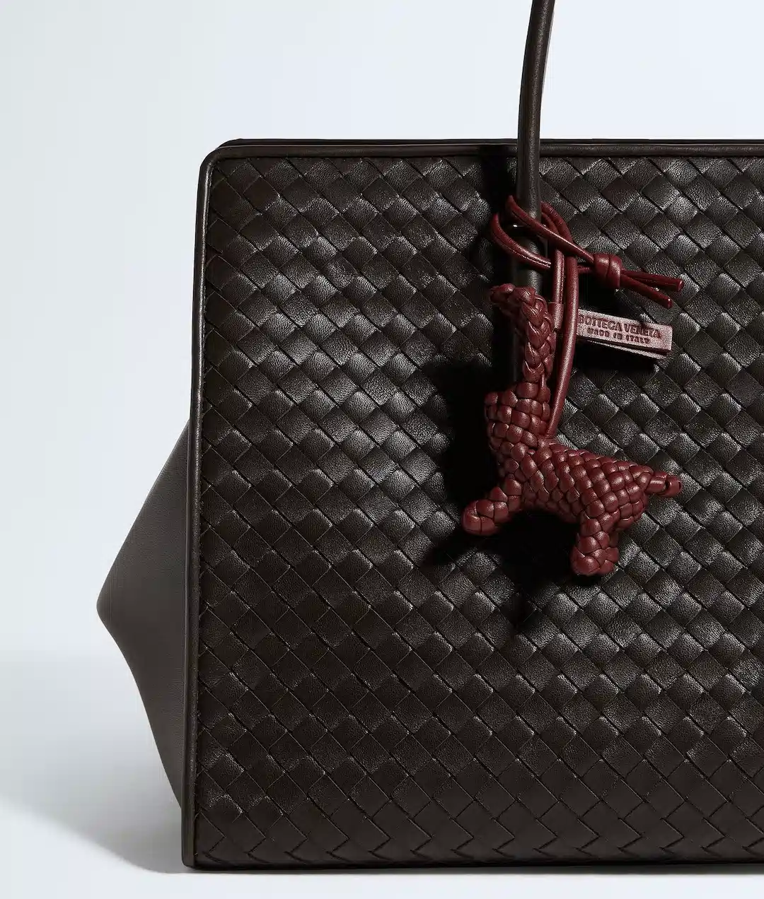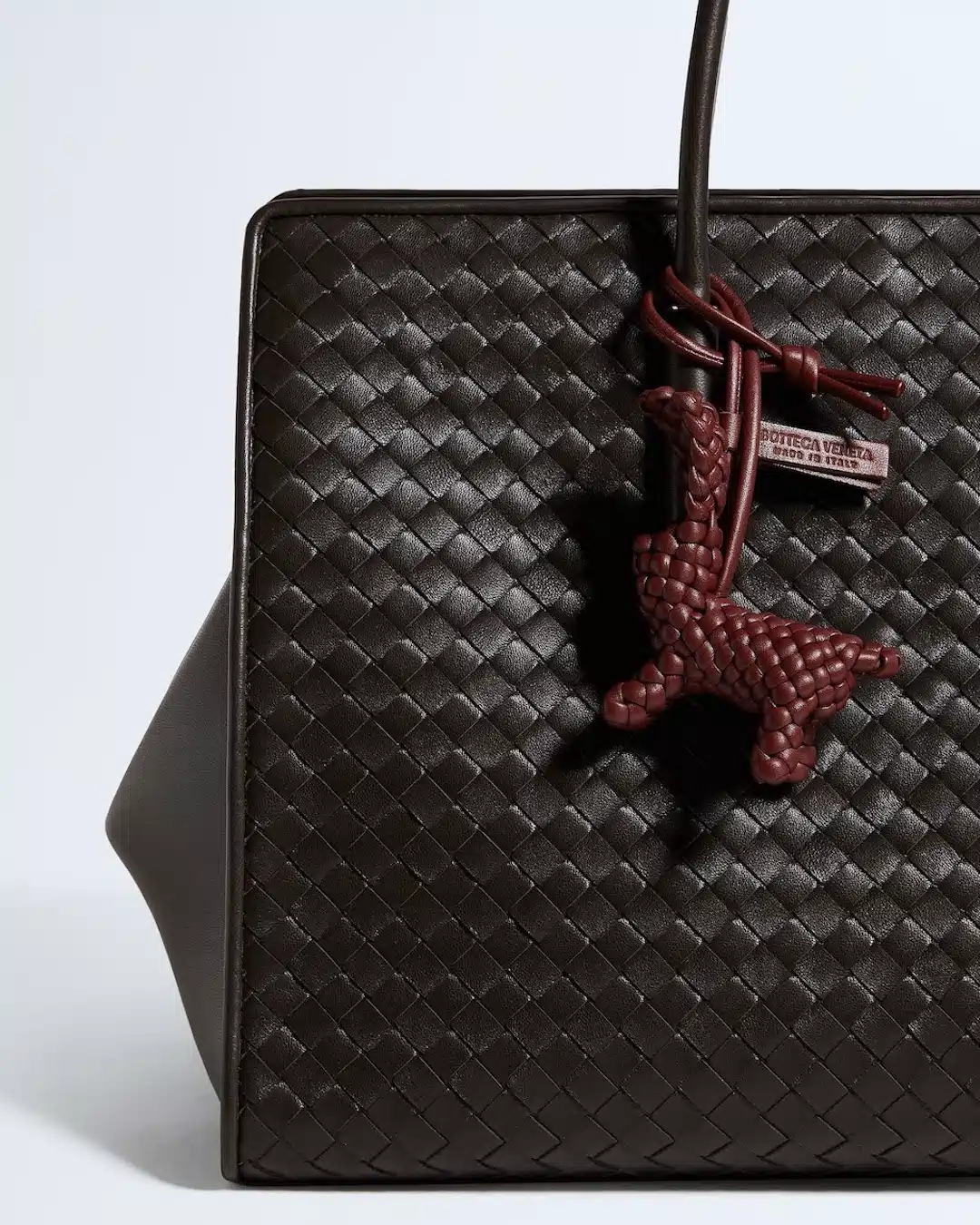 アニマル チャームシリーズは、イントレチャート ナッパレザーを用い、4mm幅のレザーチューブ約6メートルを使用して手作業で編み上げられている。1点の完成には3時間以上を要し、ブランドのクラフツマンシップを体現するアイテムだ。実用性を考慮した約17cmのループにより、さまざまなハンドルに装着可能で、ループにはレザータグが付属する。