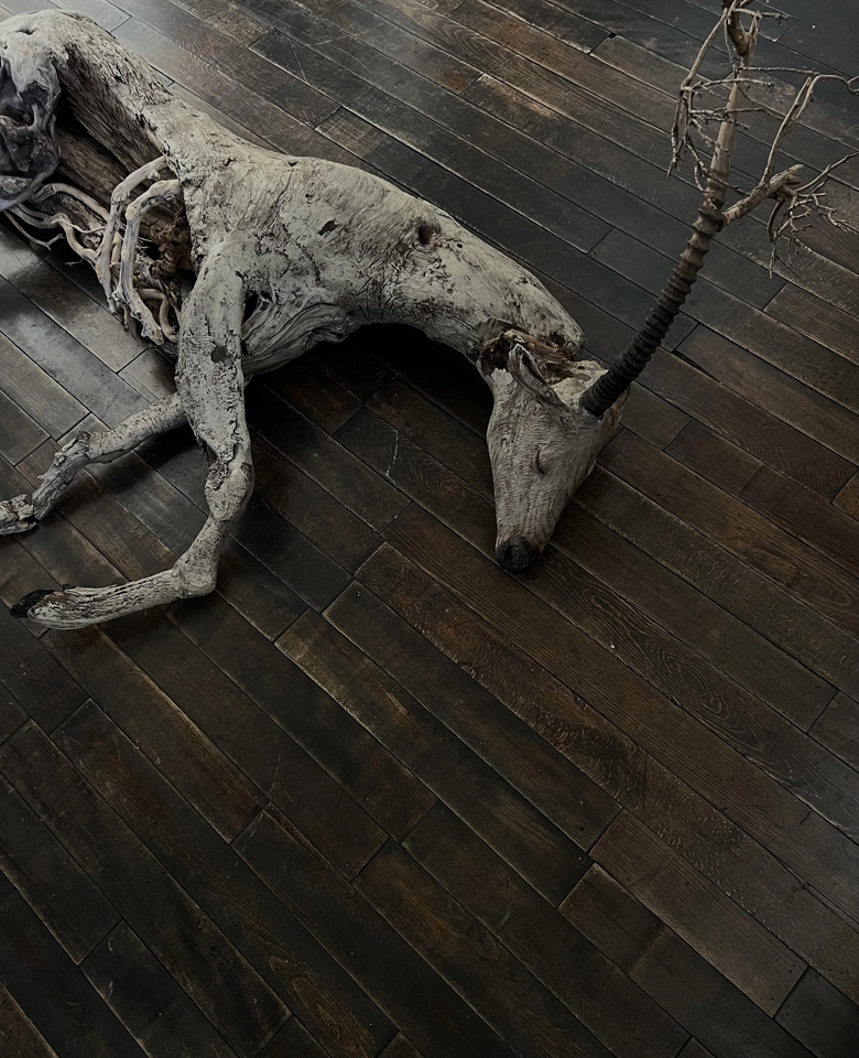 本展は、現代では薄れつつも日々の暮らしの中で大切に継承されてきた自然との深い関わりに着目し、それを創作活動へ取り入れながら、「いのちの行方」について視覚的に提示する6人のアーティストを紹介する。彼らは、流木や古紙ダンボール、狩猟で得た膠(にかわ)など、出会った素材と真摯に向き合い、対話を重ねながら作品を生み出している。そうして生まれた作品は、それぞれ異なる表情を持ちながらも、共通の方向へと私たちを誘う。彼らの作品を通じて自然との向き合い方を改めて考えるとともに、環境破壊や気候変動への危機感が高まる今、本展が私たちの日常の営みを見つめ直す一助となることを願う。
