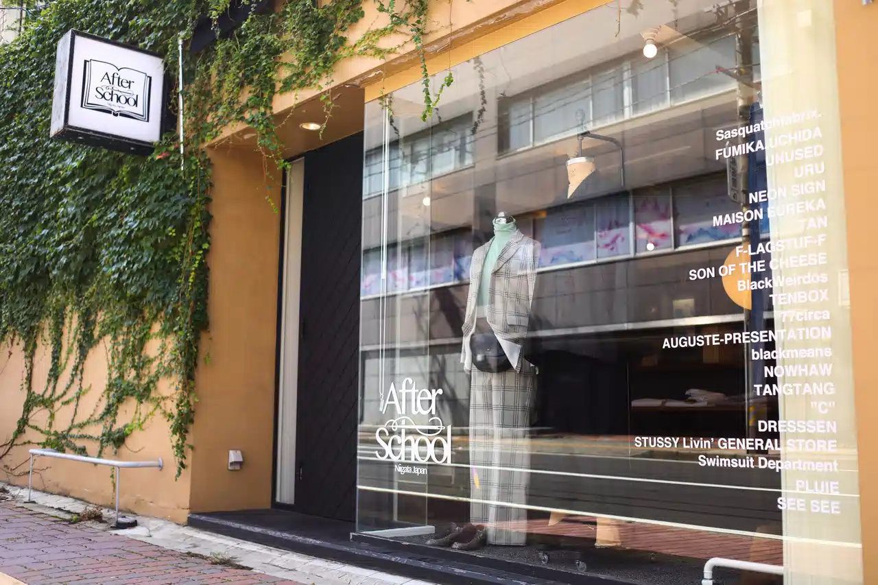 「After School」はファッション、カルチャーを通して生活を豊かに楽しむことでライフスタイルが、『アガル』提案をしていく『学校』をコンセプトしたセレクトショップ。多種多様なファッション、カルチャーに触れてきたバイヤーのユニークかつ確かな審美眼にかかった厳選された『アガル』洋服や雑貨、その他面白い物をセレクト。また、様々なクリエイターとアーティストを招いて行われるイベントなど授業を位置づけてセンスUPや生活を楽しんで貰う活動をしている。