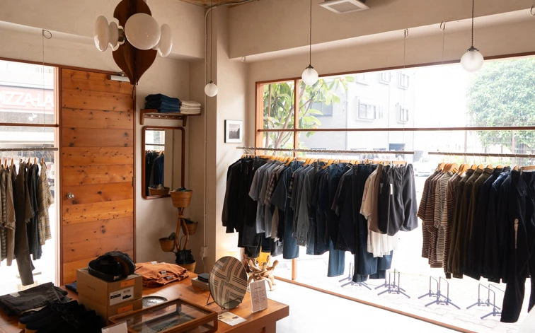 アパレルストアとヘアサロンが一体となった、生活に根ざしたショップ。